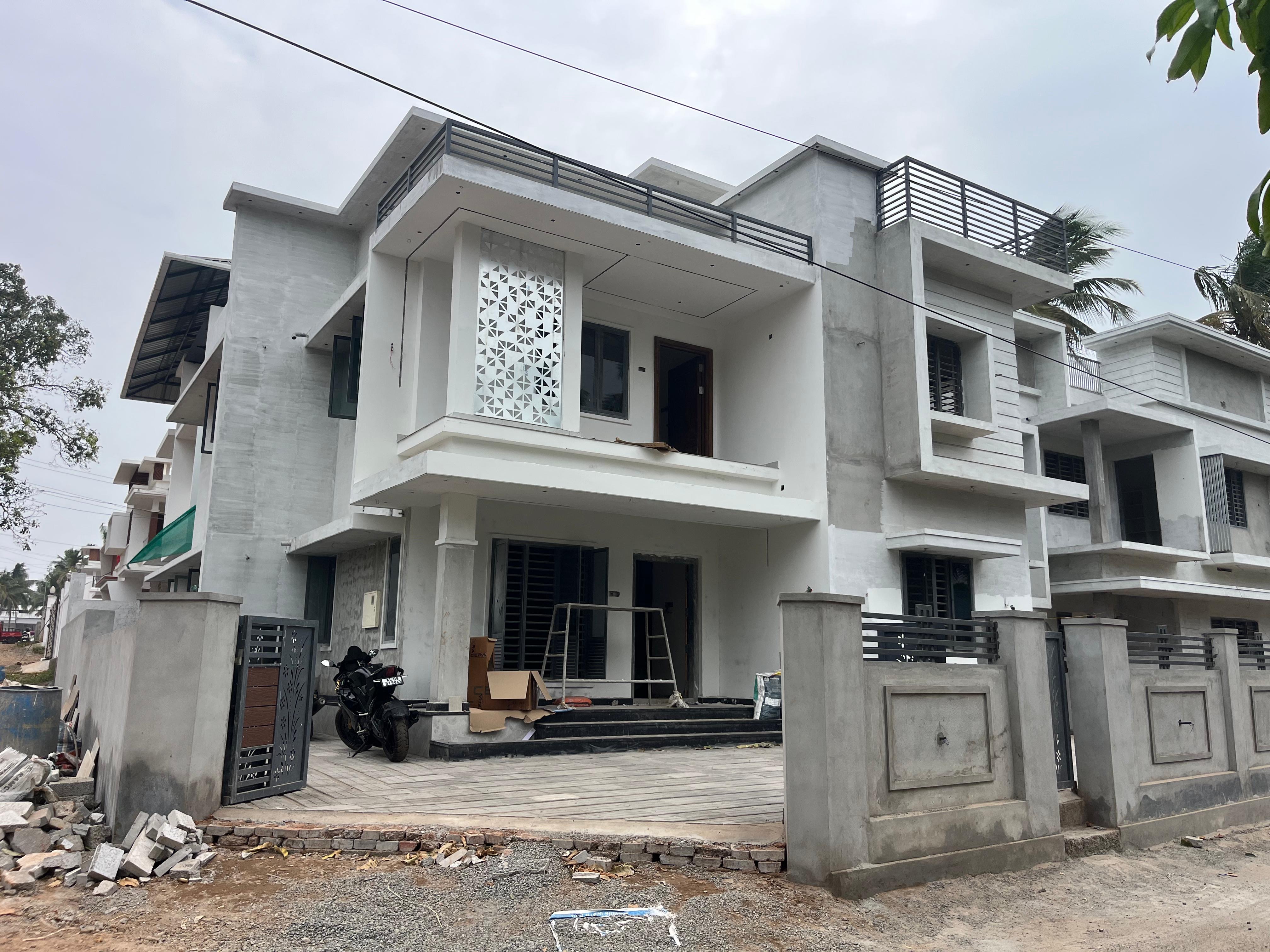 New Semi furnished 5 bedrooms, 2260Sqft, 5.3cent, villa located at Mannuthy Vellanikkara Thrissur. stylish finished Dining, Kitchen cabinets, Kitchen platform with black granite counter top and stainless-steel sink, wardrobes, 4-bathroom, common toilet, Balcony, wide work area, AC provision in all bedrooms, Provision for Geyser, vitrified tiles, good sanitary fittings, car parking facility, tar road access, throughout the year Unlimited natural water supply through the internal pipeline from the open well. All the amenities that make life more pleasurable have been incorporated. This is a really stunning and beautiful house design with lots of latest facilities.