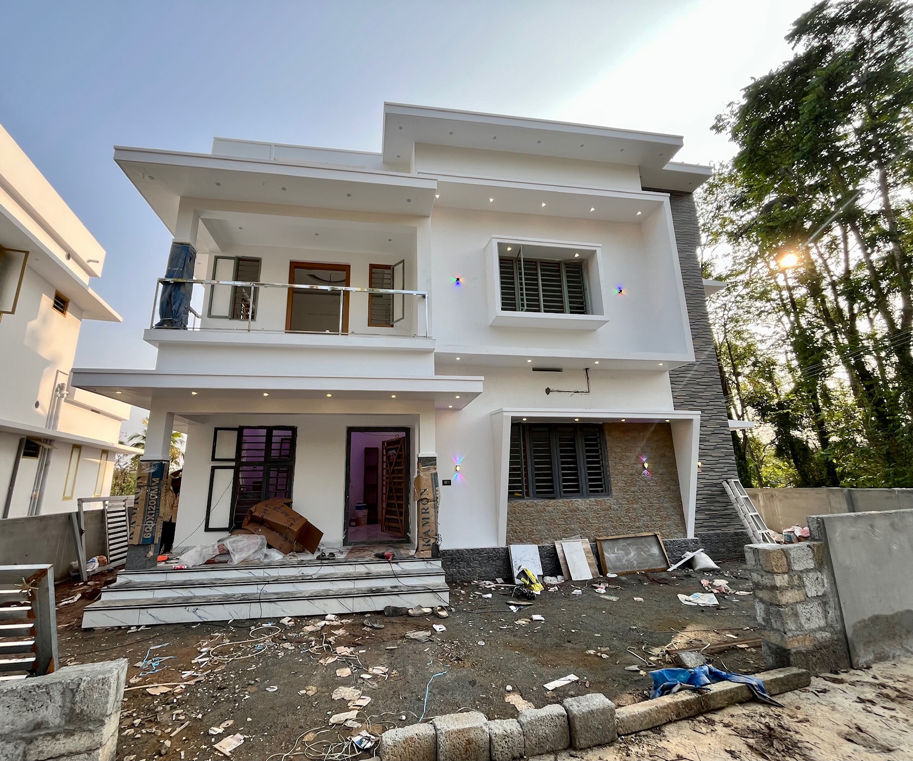 An estimated 1km from bus route, 1.5km from ekm highway,6.5km from Thrissur, Banks, ATMs, Super markets, worship places such as church, mosque and temple are within 500 mts from the house. This is a really stunning and beautiful house design with lots of latest facilities.