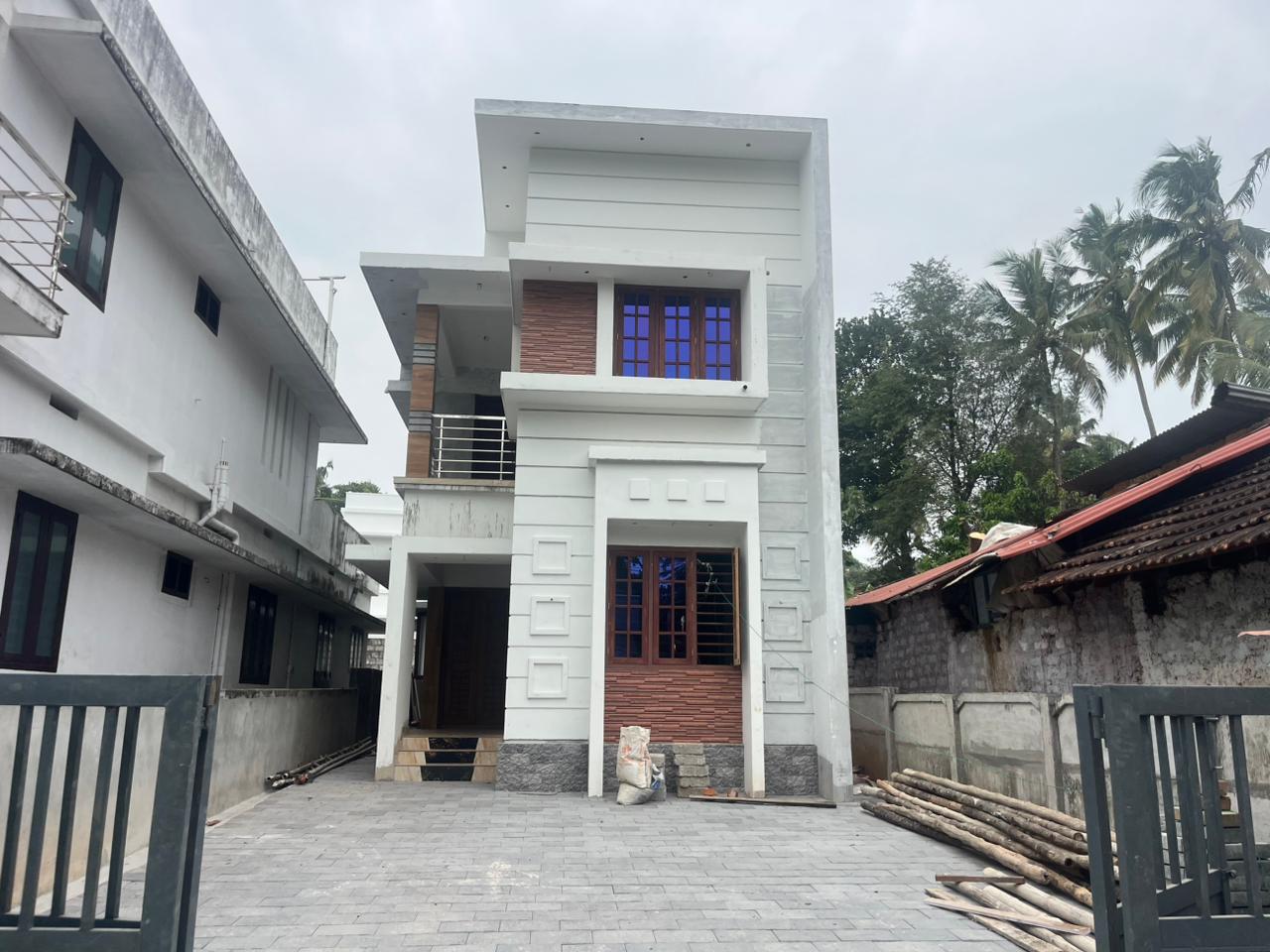 Brand new Semi furnished 4 bedrooms, 1500 Sqft, 5.4 cent, newly villa located at Nellikunnu Thrissur. This posh villa consists of generous living, stylish finished Dining, Kitchen cabinets, Kitchen platform with black granite counter top and stainless steel sink, wardrobes, 4 bathroom, common toilet, Balcony, wide work area, tar road access, throughout the year Unlimited natural water supply through the internal pipeline from the open well. All the amenities that make life more pleasurable have been incorporated. This is a really stunning and beautiful house design with lots of latest facilities.