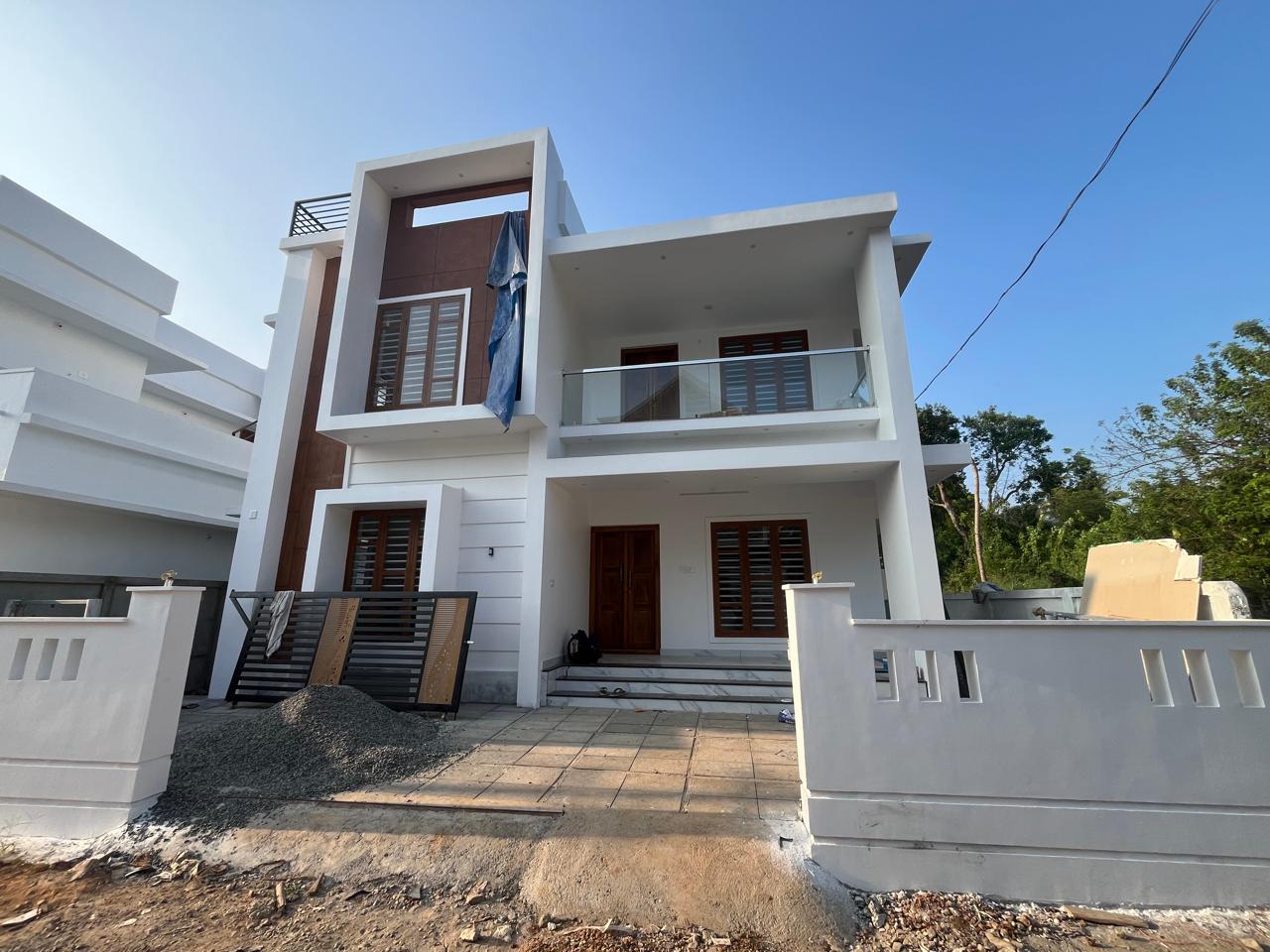 Independent Semi furnished New house for  sale in Mudicode Mannuthy  Thrissur, 4 bedroom spacious residence spanning over 1750Sqft, land extend 4.5cent, two storied  villa has generous living space, stylish finished Dining, kitchen,  Provision for water purifier  , vitrified tiles for floor, all doors of made with good quality hard wood frame, branded items for electrical, water supply, 3 bathroom, Balcony, wide work area,  Tar road access, the entire land is secured with boundary wall with Gate, Ensuring uninterrupted water supply round the year. Superb location enjoying proximity of all important requirements for a modern life style.