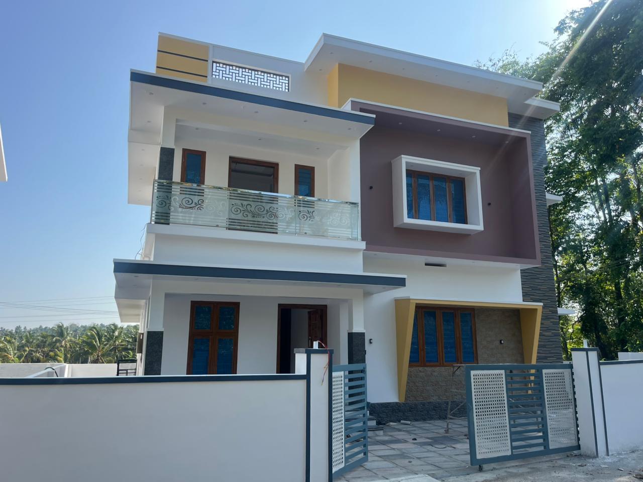 Semi Furnished villa located at Nadathara Thrissur. newly built house 2150SqFt 5.25Cent, newly villa got 4-bedroom, generous living space, stylish finished Dining, Kitchen, 4bathroom, common toilet, generous Balcony, wide work area, sit out, living, dining, bedrooms, This home beautifully planned that whenever you step out you witness an abundance of verdant greens.