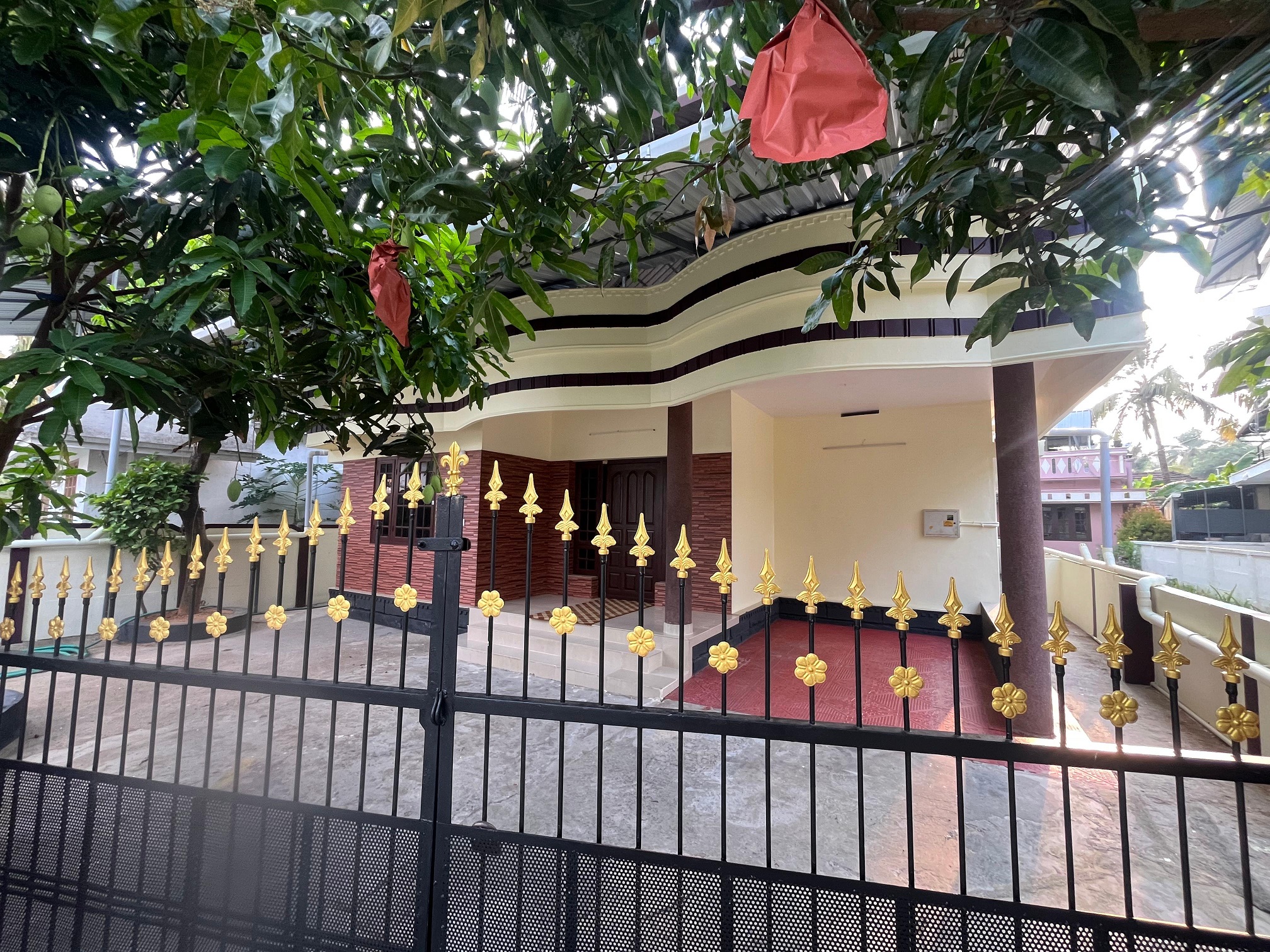 villa located at Nadathara Thrissur. 1200SqFt,5Cent semi-furnished, villa got 3 bedroom, generous living space, stylish finished Dining, Kitchen , wardrobes, 3bathroom, generous Balcony, wide work area, Superior quality vitrified tile flooring, brand vitrified tiles in sit out, living, dining, bedrooms, kitchen and balcony and ceramic tiles in toilets and work area, Surrounded compound wall with entrance gate, Unlimited natural water supply through the internal pipeline from the open well. This home beautifully planned that whenever you step out you witness an abundance of verdant greens.